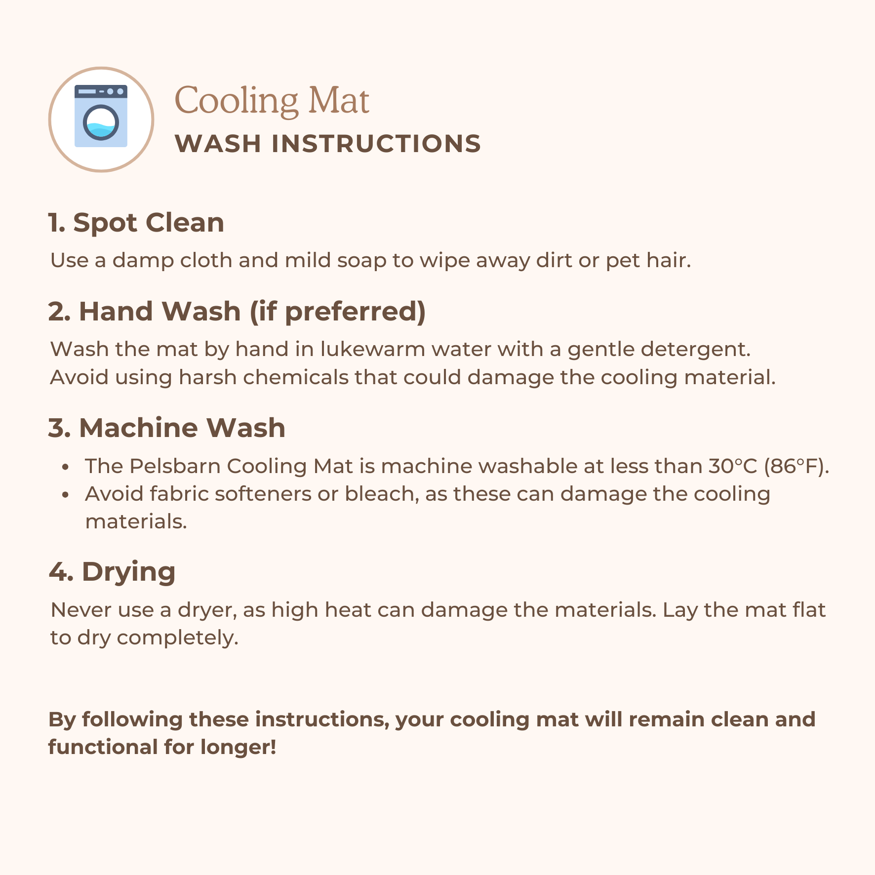 Cooling Mat CareUpdated 3 months agoHere are the instructions on how to wash and reshape your Pelsbarn Cooling Mat. Was this article helpful? YesNo