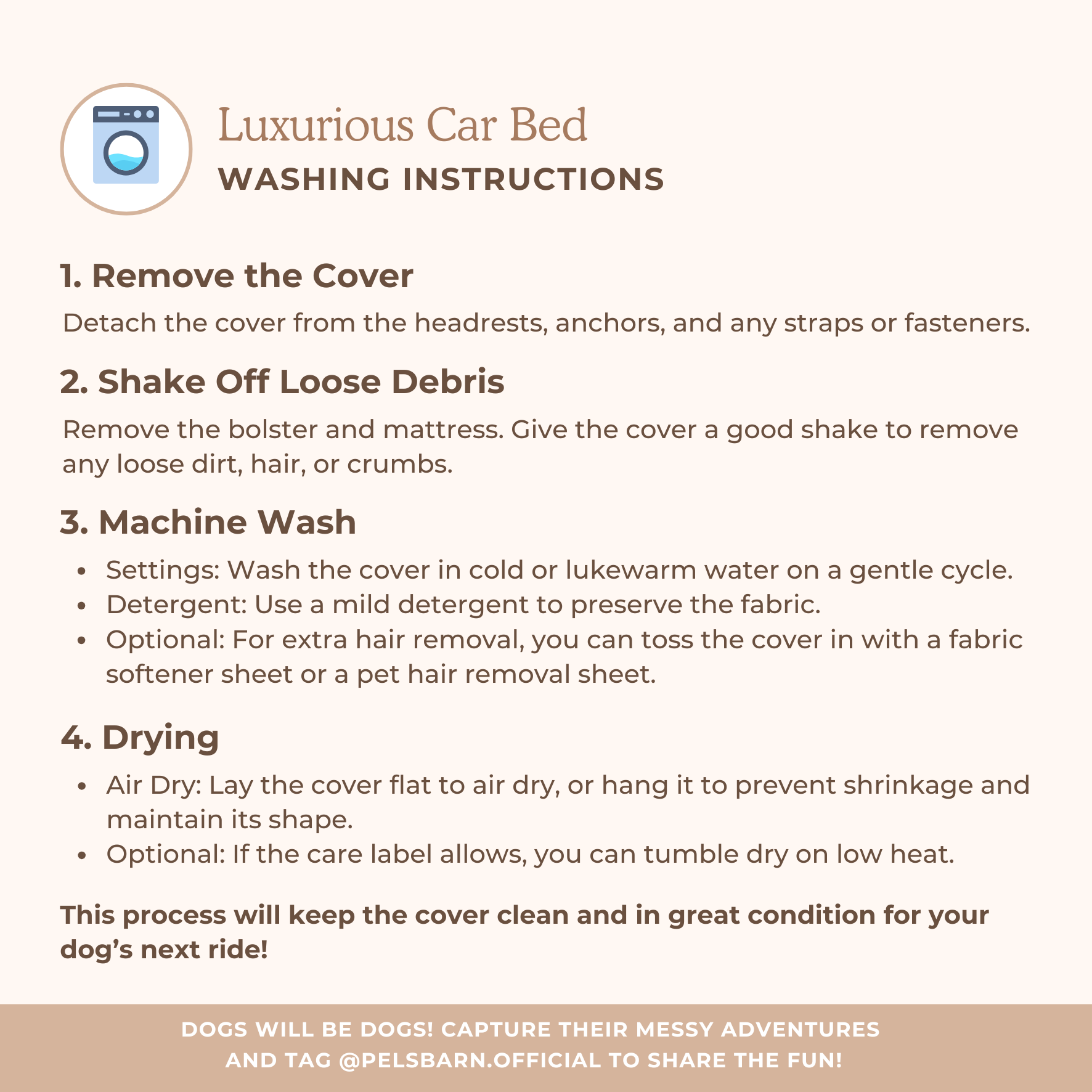Luxurious Car Bed CareUpdated 12 days agoHere are the instructions on how to wash and reshape your Pelsbarn bed. Was this article helpful? YesNo